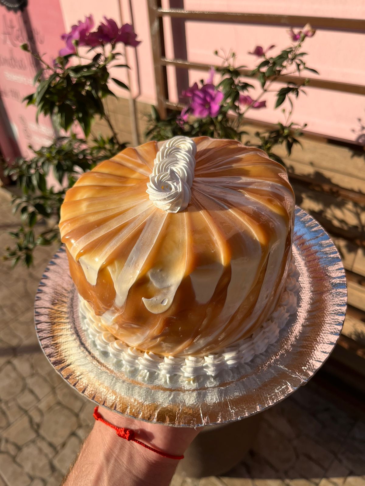 Massa branca molhadinha com três camadas recheadas de doce de leite.